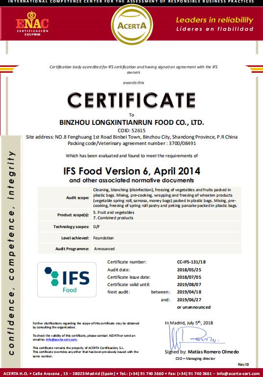 IFS:國際食品標準是由HDE-德國零售商聯盟和FCD-法國零售商和批發(fā)商聯盟共同制定的食品供應商質量體系審核標準,該標準在德國和法國等歐洲國家比較有影響力,也獲得國際食品零售商聯合會認可。