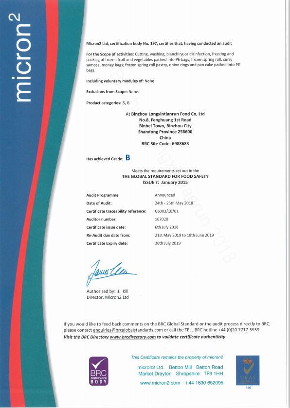 BRC認證:A級英國零售商協會標準,歐洲及全球的零售商選擇供應商時,作為條件之一,要求提供BRC證書